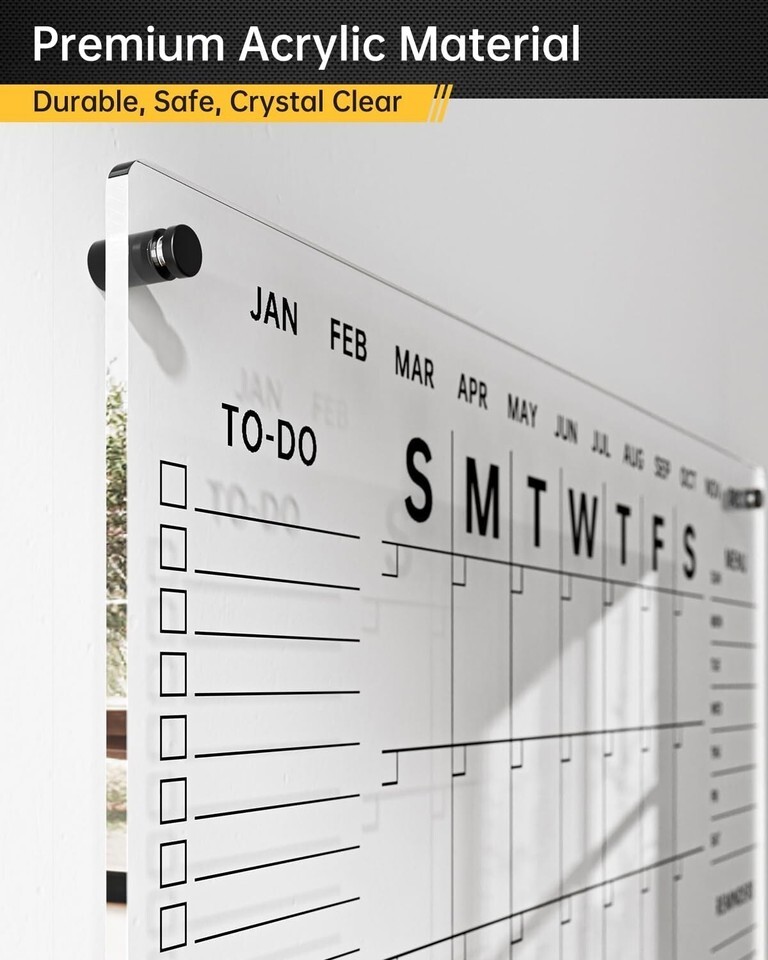 Reusable Sustainable: Reduce waste with our dry-erase acrylic calendar, designed for repeated use-just write, erase, and plan again!