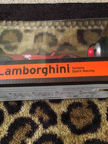 Lamborghini Veneno Sport Racing Remote Control Car R/C Scale 1:24 new in box and was opened to see the car but was never used. The plastic on the packaging is torn off on the plastic areas and will be taped back together.