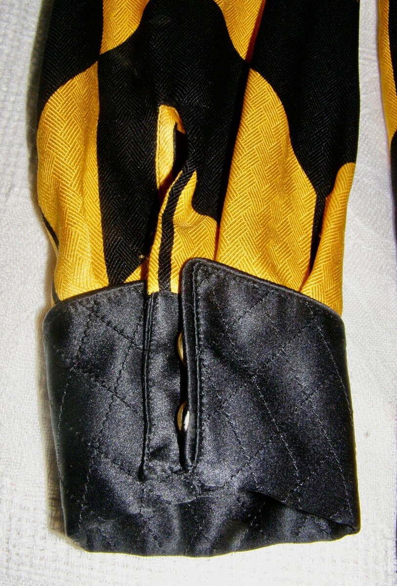 GOLD-TONE + BLACK ENAMELED BUTTONS ON CUFFS + TOP NECK -