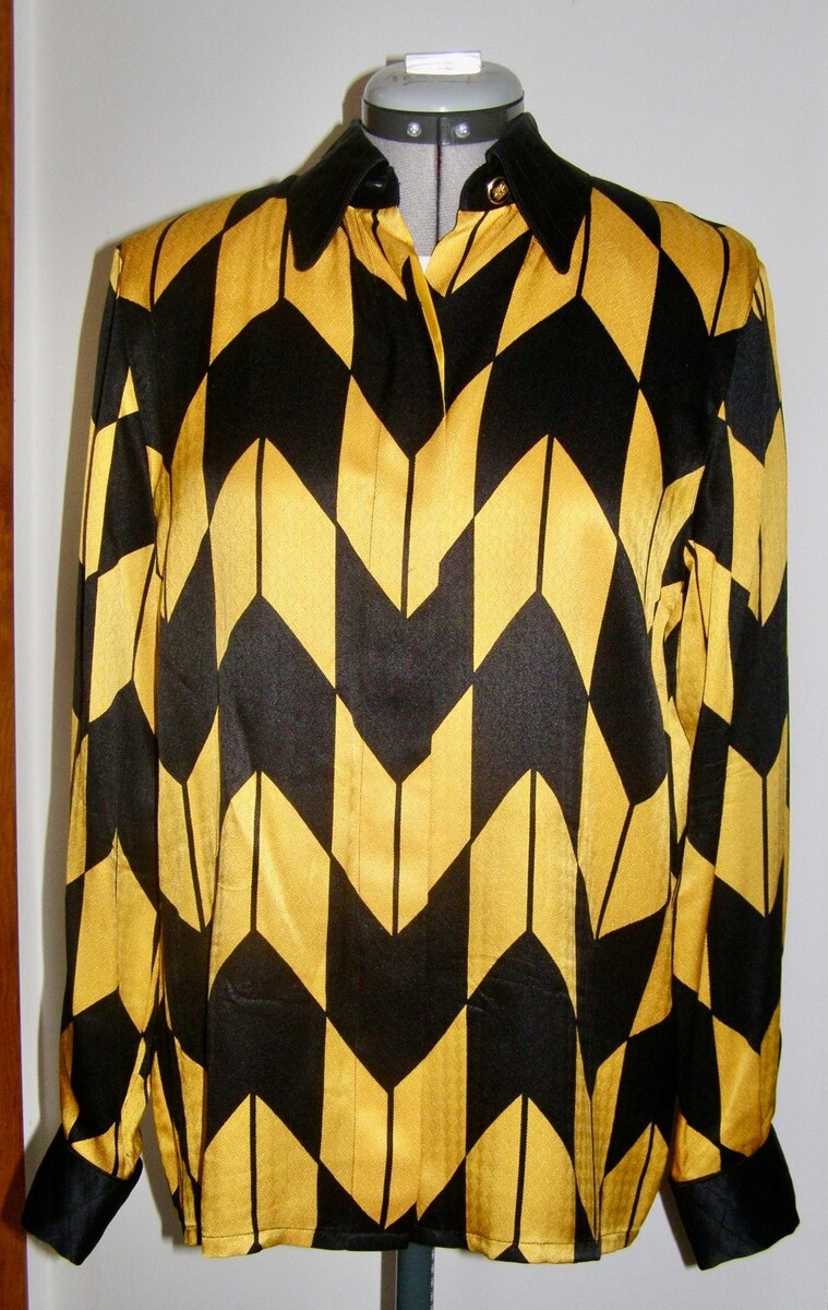 VINTAGE STARINGTON, BLOUSES BY CHARLOTTE - SILK CHARMEUSE BLOUSE - BOLD CHEVRONS