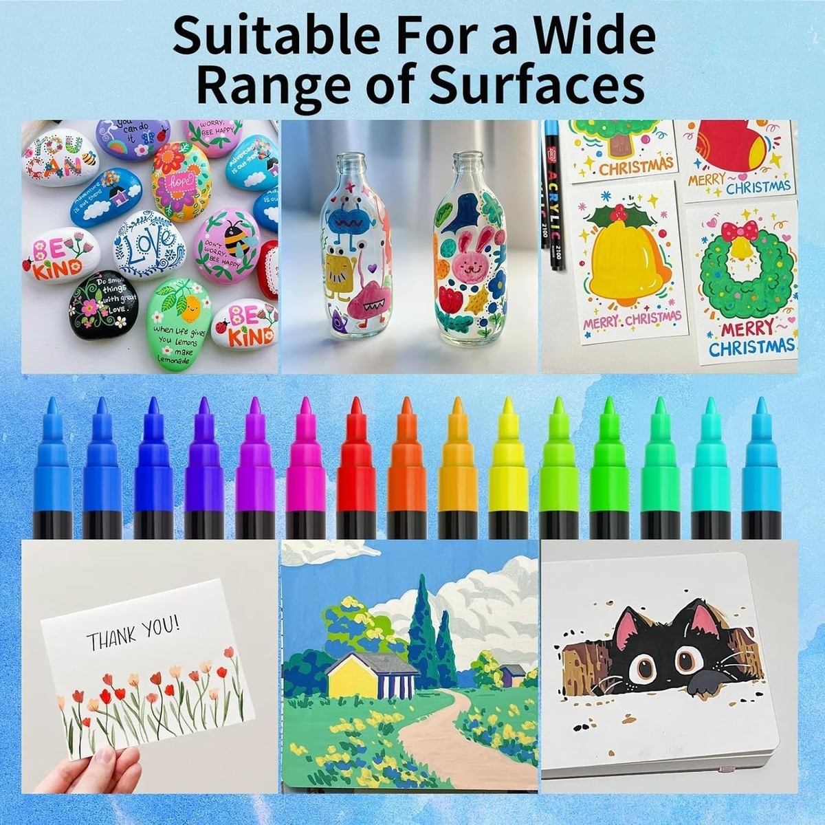 Universal Surface Performance: These paint markers feature high-opacity water-based ink that adheres vibrantly to multiple surfaces - glass, ceramic, metal, canvas, leather, plastic, wood and stone. Perfect for journaling, artistic illustrations and DIY projects, they deliver brilliant, long-lasting color on any material.