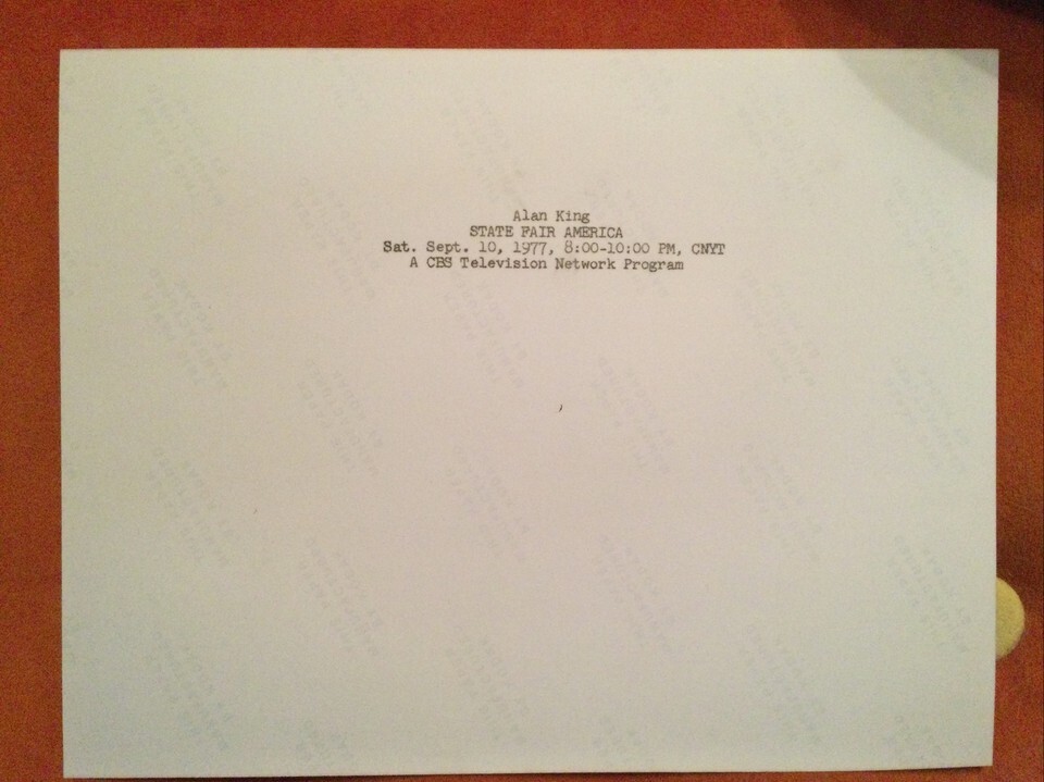 Alan King CBS Press photo 1977 State Fair America. Shipped FREE with USPS First Class. 7? x 9?