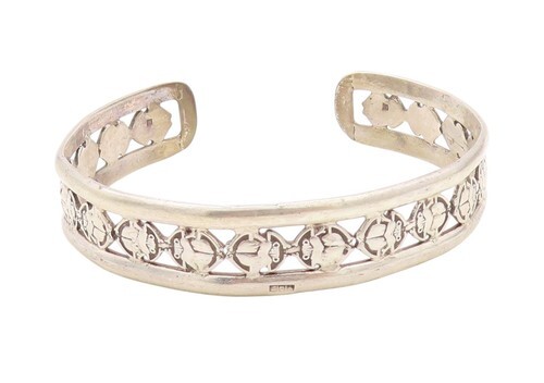 Looks like sterling silver and doesn't stick to magnet but not 100% sure