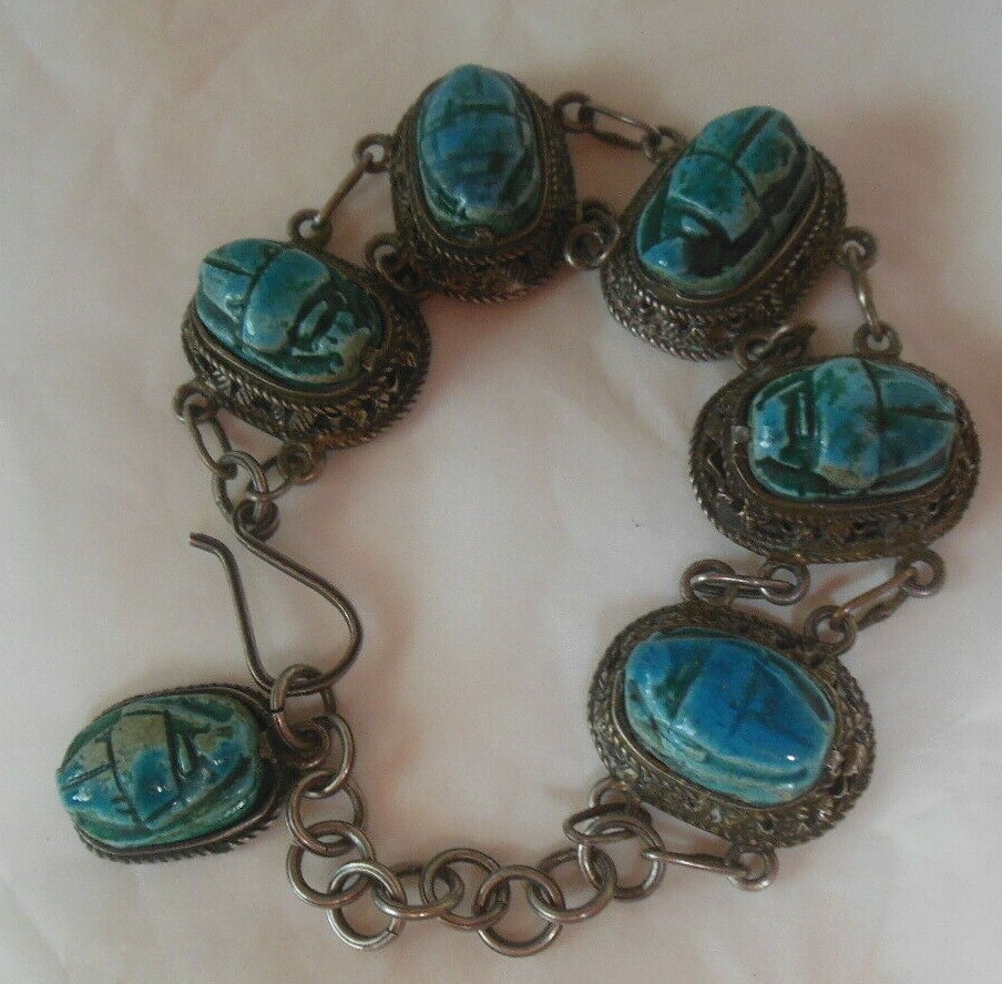 Vintage Blue Porcelain Scarab Bracelet Five and similar items