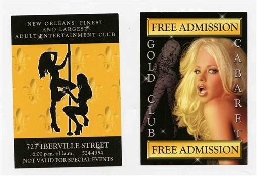 2 Gold Club Cabaret Free Admission Cards Located on Iberville Street in New Orleans Louisiana. The Finest and Largest Adult Entertainment Center