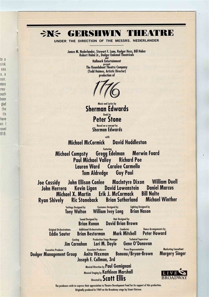 1776 Playbill Gershwin Theatre New York Michael McCormick David Huddleson