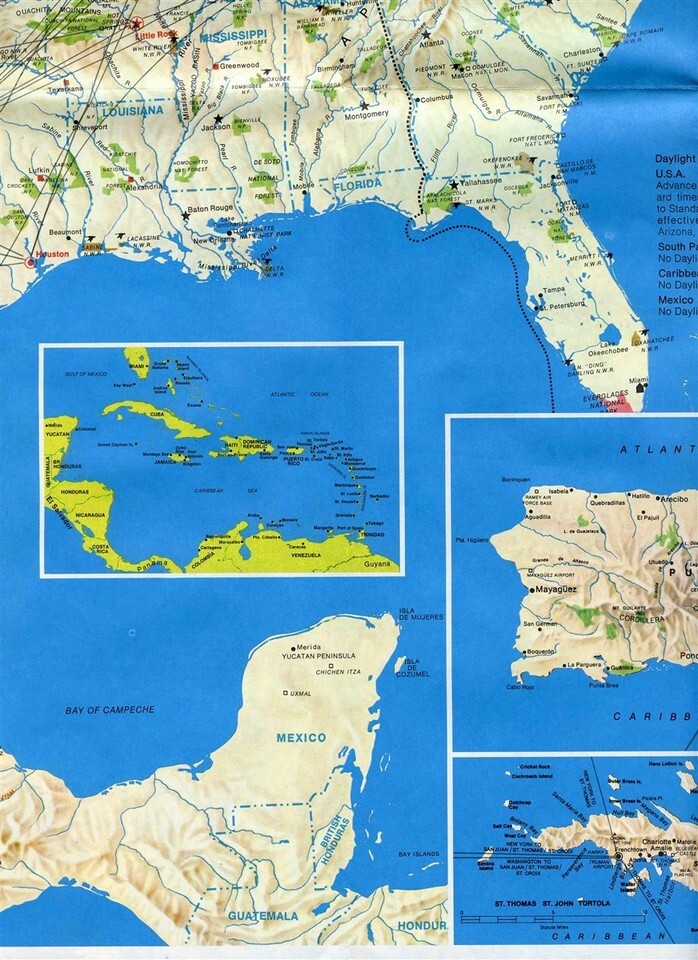 American Airlines Route Map North America Pacific Caribbean 1970
