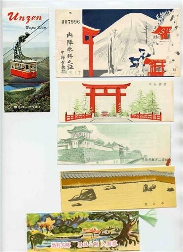 6 Different Colorful Japan Tourist Attraction Souvenir Tickets 1980's
