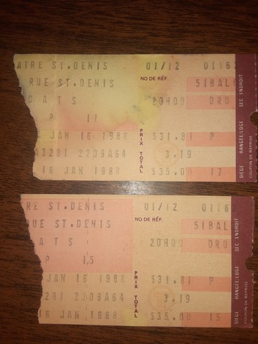 A ticket Stub from a performance at the Palace Theatre in New York City of La Cage Au Folles on July 17, 1984