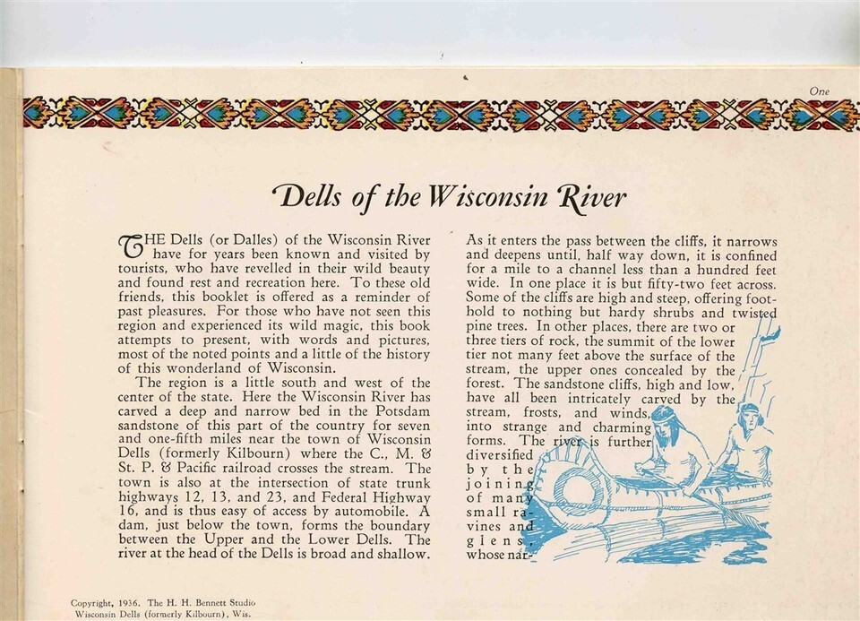 Dells of the Wisconsin River Color Pictures Booklet 1936 H H Bennett