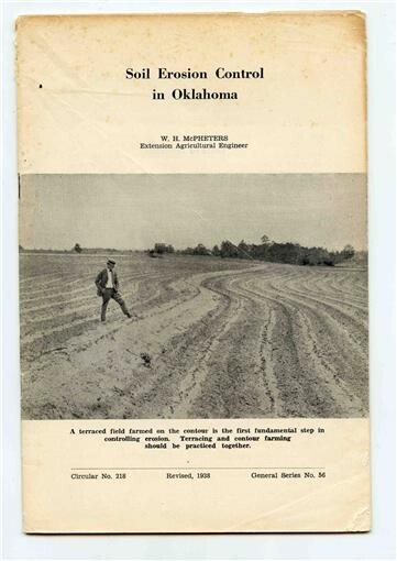 A 36 page booklet illustrated with drawings and photos. Soil Erosion Control in Oklahoma, Circular No 218 ,Revised 1938