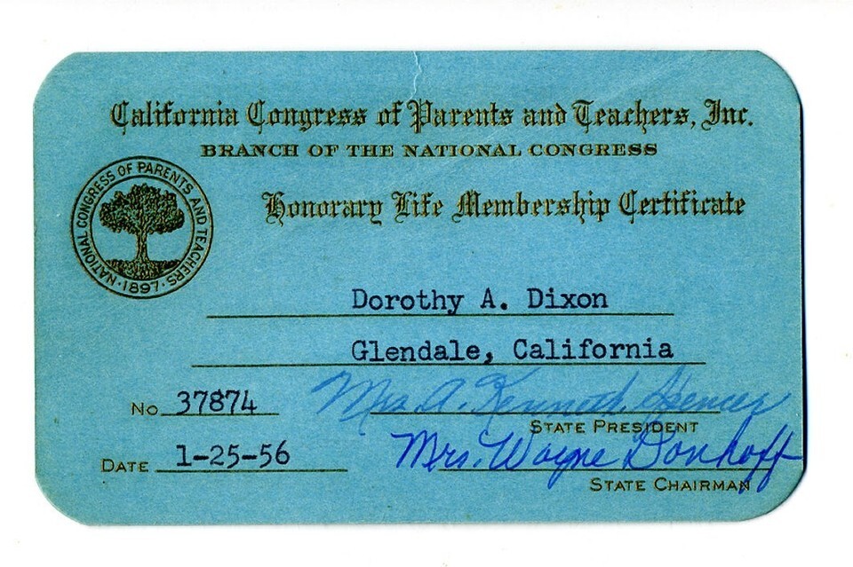1956 California Congress Parent & Teachers Honorary Life Membership Certificate