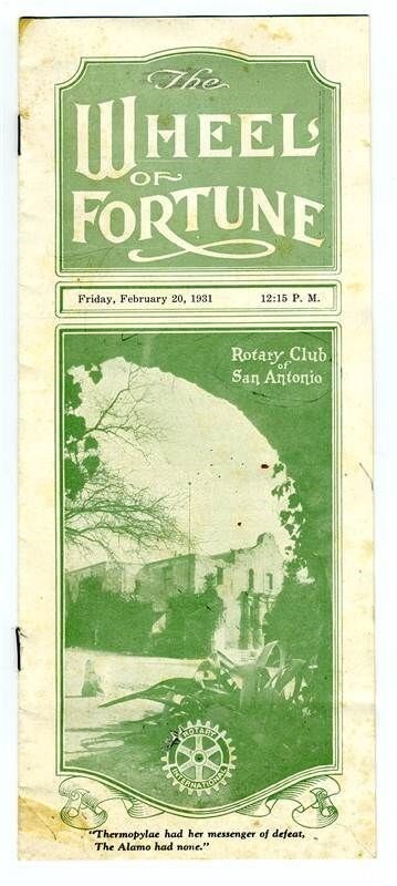 The Wheel of Fortune 1931 Rotary Club of San Antonio Washington Birthday Program