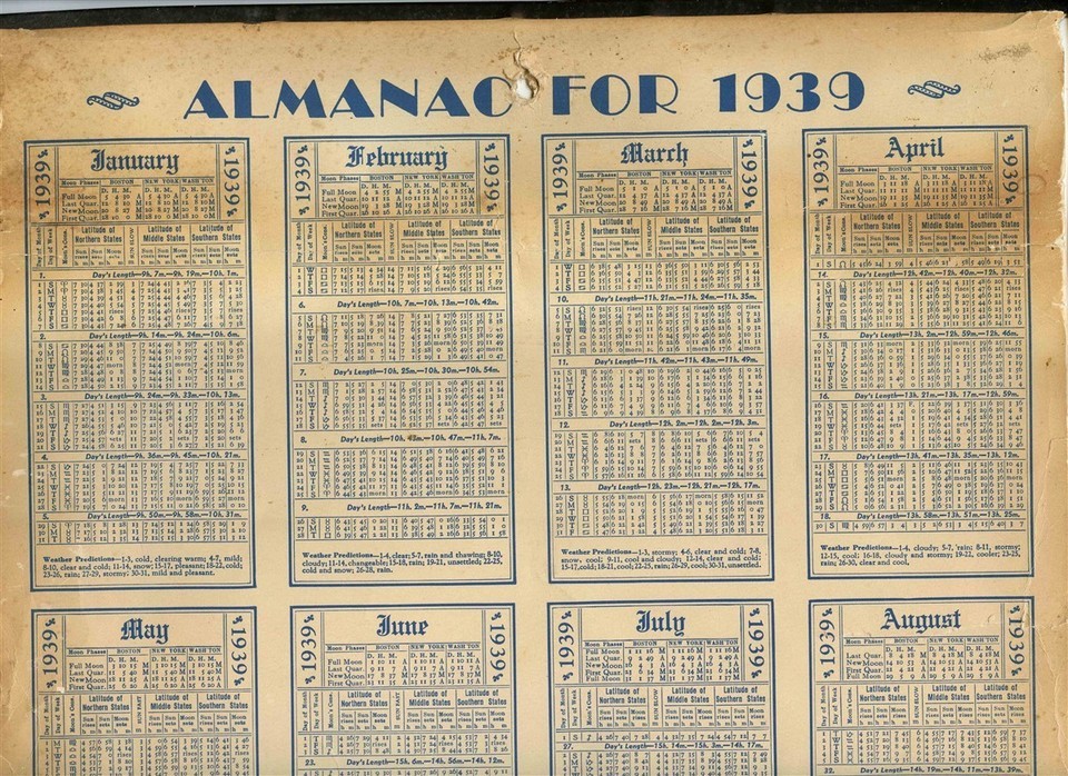 Opens to about 12" x 17". Farmrite Central Chemical Corp 1939 Calendar . Has monthly cash record form on the back of each monthly page. Some have been used.
