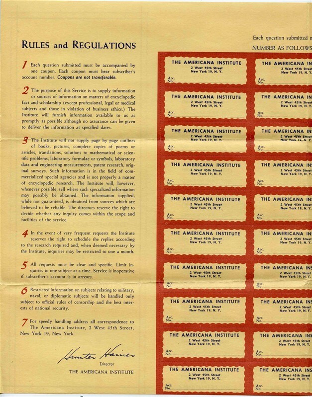 The Americana Institute Brochure and Coupons to Ask Questions Encyclopedia 1930s