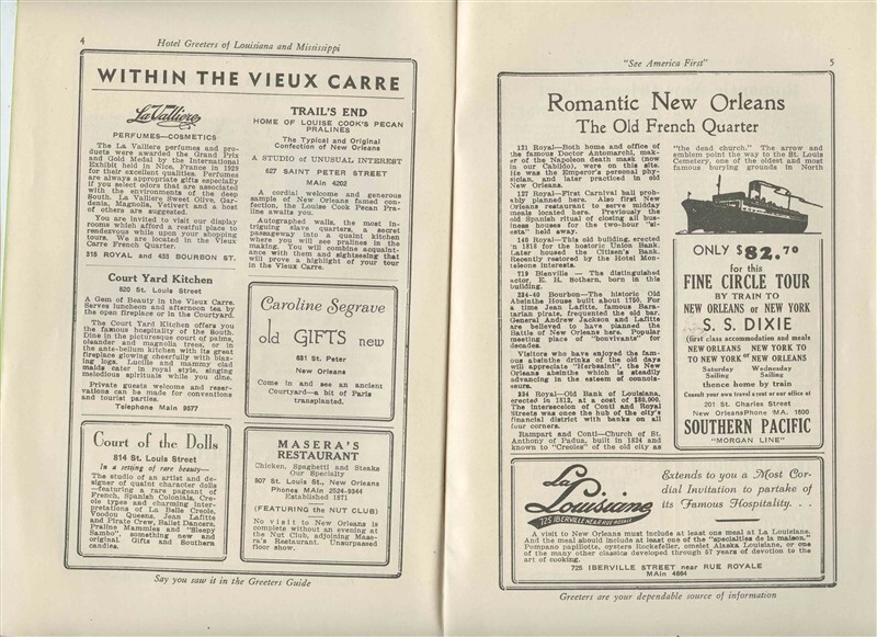 New Orleans Hotel Greeters Tourist Guide March 1938 Louisiana