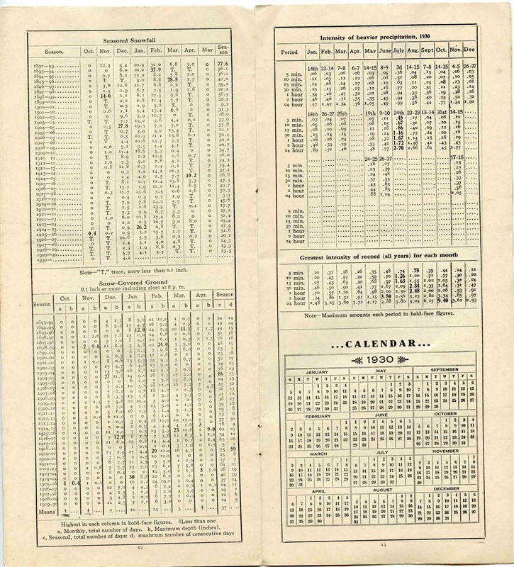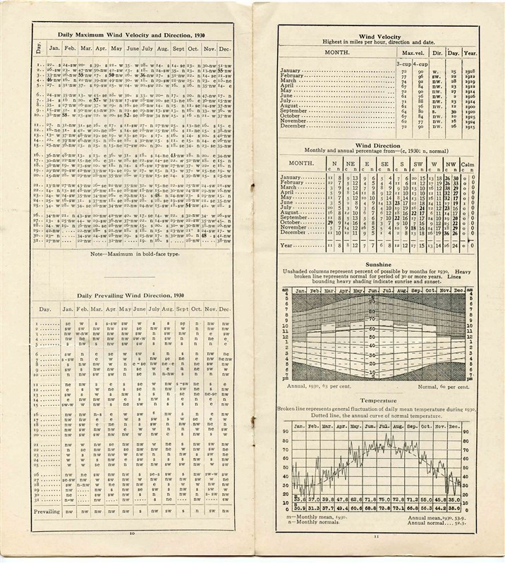 A 16 page soft cover booklet of charts an information. Department of Agriculture Weather Bureau 1930 Annual Meteorological Summary New York