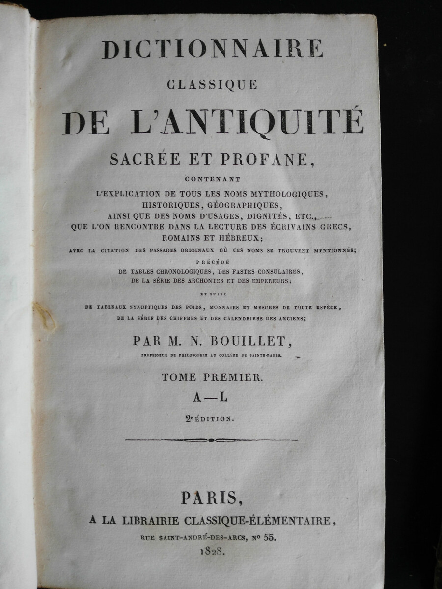 Bouillet Dictionnaire de L'Antiquité Sacree Et Profane 2 Tomos año 1828 Unique