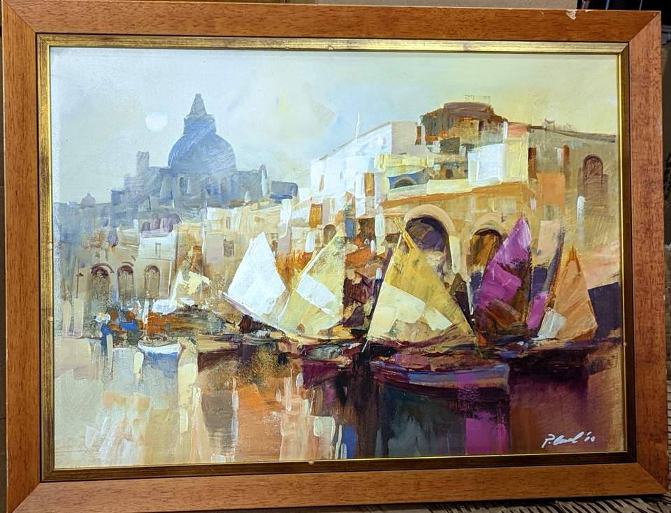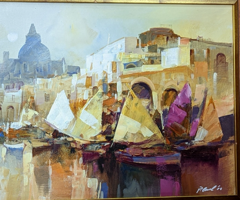 PIETRO PICCOLI PALETTE KNIFE OIL ON CANVAS PAINTING ABSTRACT SAILBOATS SEASCAPE