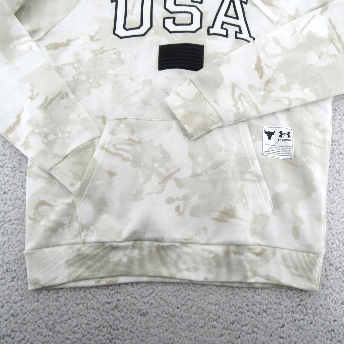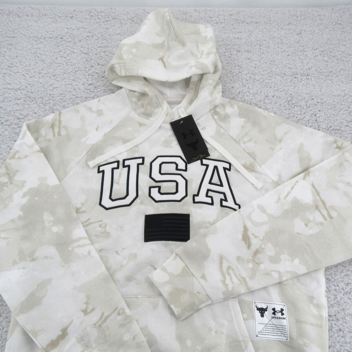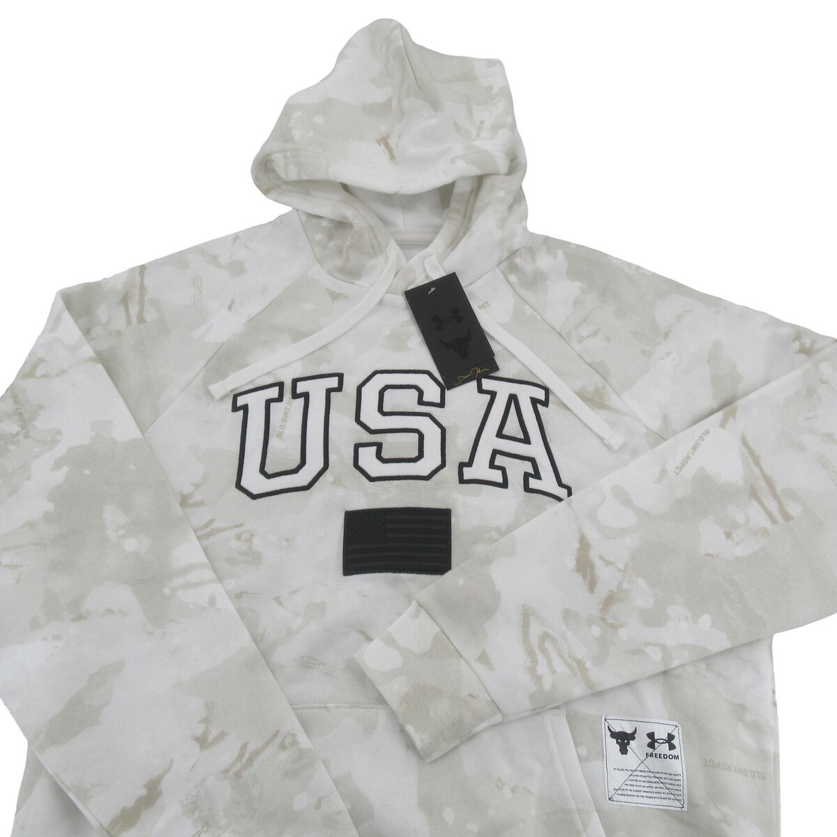 Under Armour UA Project Rock Veterans Day USA Camo White Pullover Hoodie