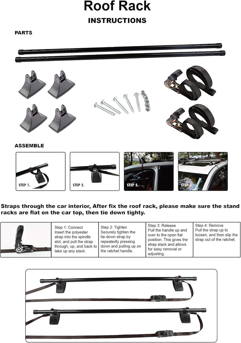 Upgrade your vehicle with our Adjustable Tie Down Cross Bars, designed specifically for four-door cars without side rails. Crafted from heavy-duty steel, these crossbars not only provide a secure fit but also allow you to transport up to 170 lbs effortlessly. The convenient design ensures you can install and disassemble in seconds, making it the ideal accessory for your next trip.