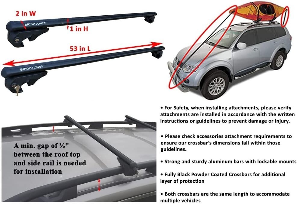 Secure 53" Black Crossbars Roof Racks - Ideal for Kayak, Ski, and Bike Transport