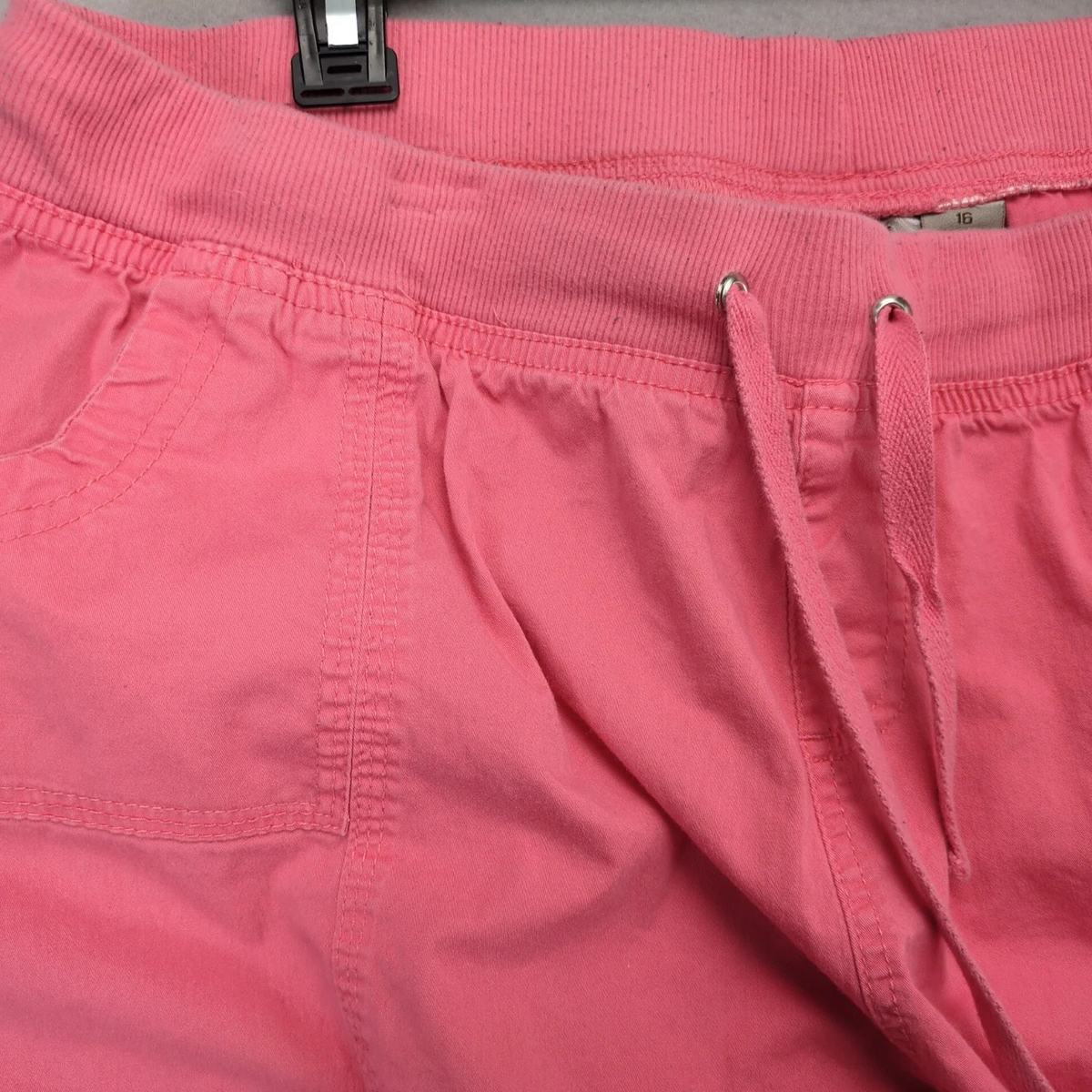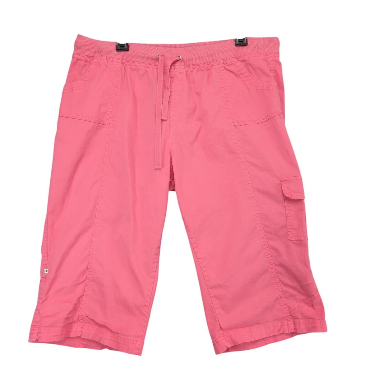 Fresh Pink Roll-Tab Cargo Shorts Women's 16 Elastic Drawstring Waist Comfort