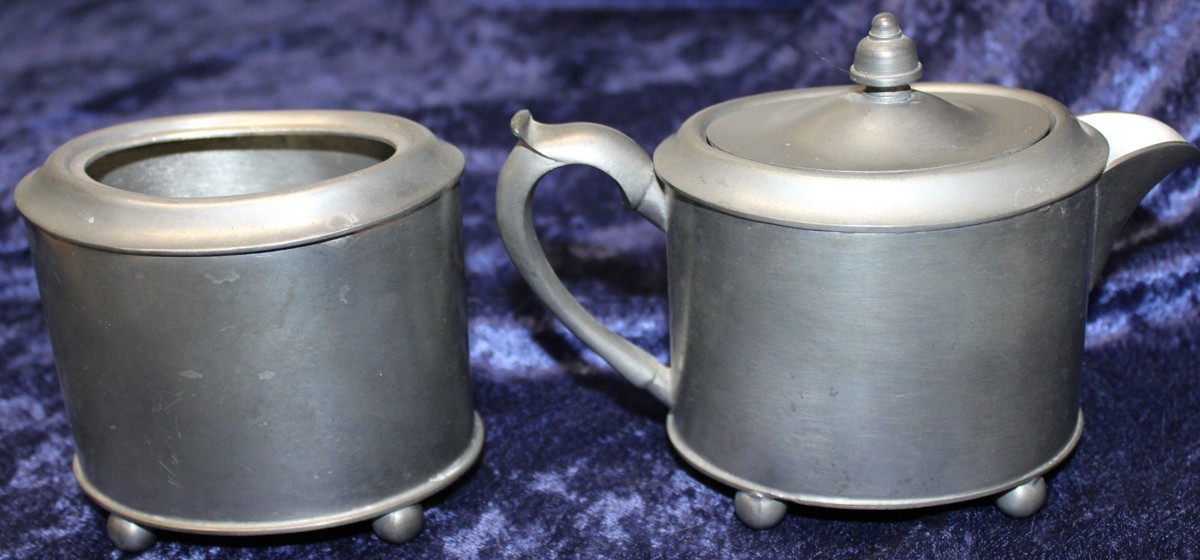 Stieff Pewter - Historic Sugar Bowl & Covered Creamer - Set (2 pieces)