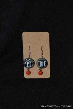 Earrings - Zebra Stripe & Red Bead Statement Earrings