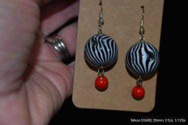 Earrings - Zebra Stripe & Red Bead Statement and similar items