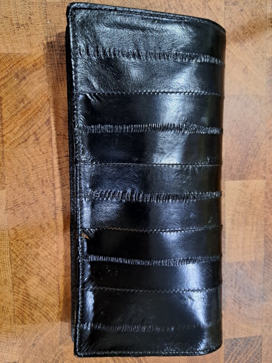 Elegant and minimalist women?s wallet made from genuine eel skin leather, known for its unique striped texture, softness, and durability. This slim bifold design is lightweight and easy to carry while still offering excellent organization.