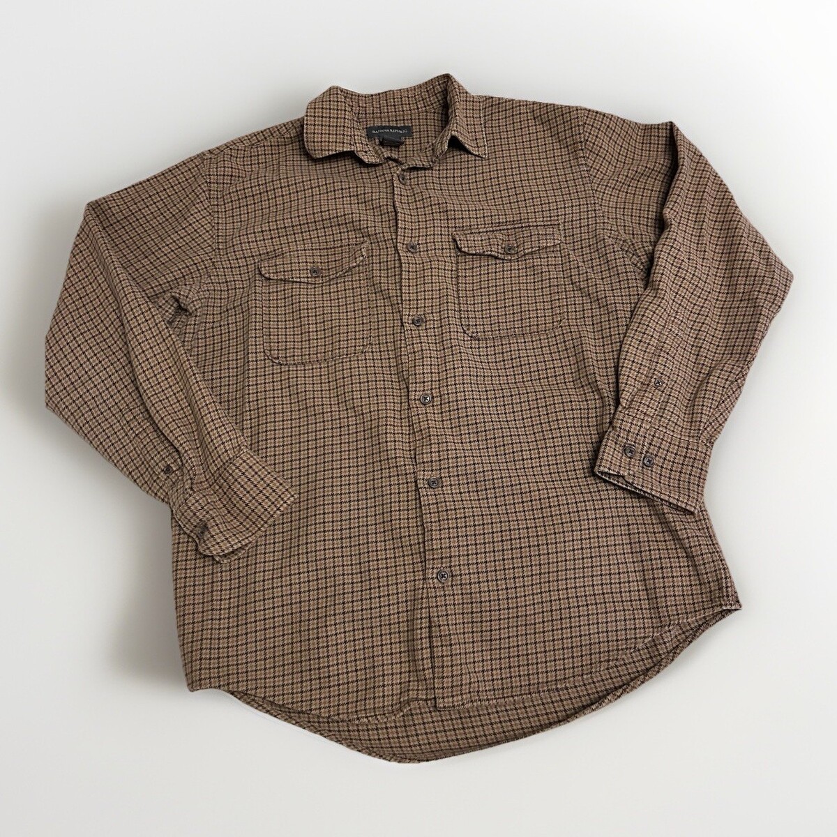 Banana Republic Men's brown plaid flannel Cotton Wool blend button down Medium