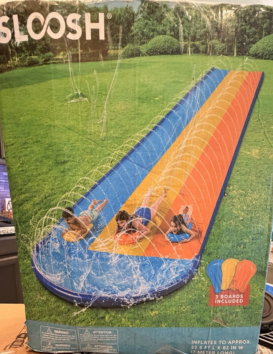 Sloosh 22.5ft Triple Water Slip Slide w 3 Boogie Boards Backyard Lawn FREE SHIP