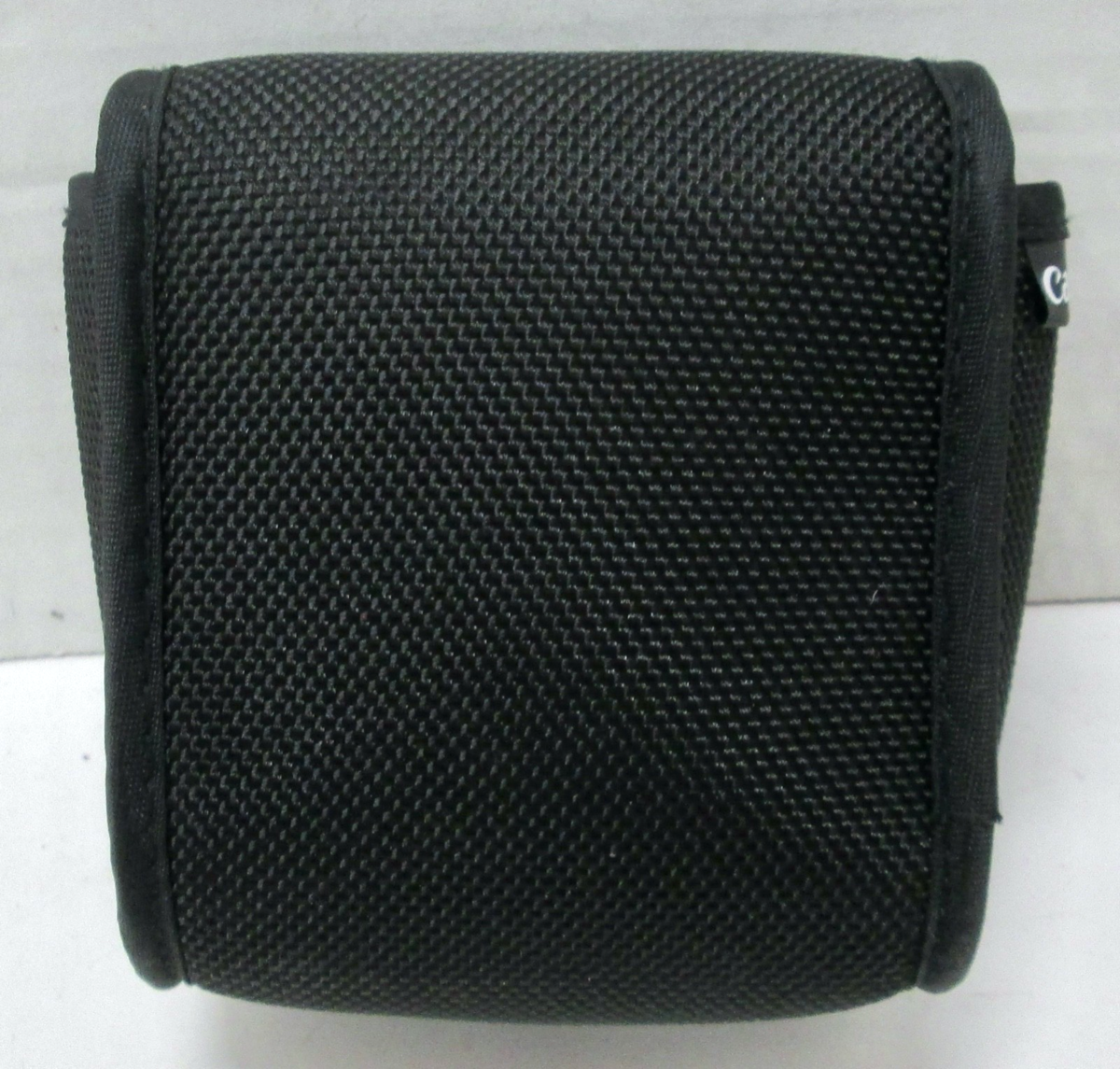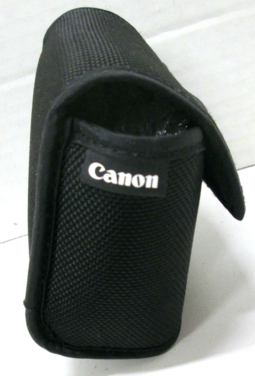 Canon Small Black Nylon Case for Speedlite Flash Transmitter ST E2/E3. The case is clean with no tears. The velcro closure works as it should. The case measures 3.5 inches tall, 3.5 inches wide. and 2 inches deep .Sold with free shipping.