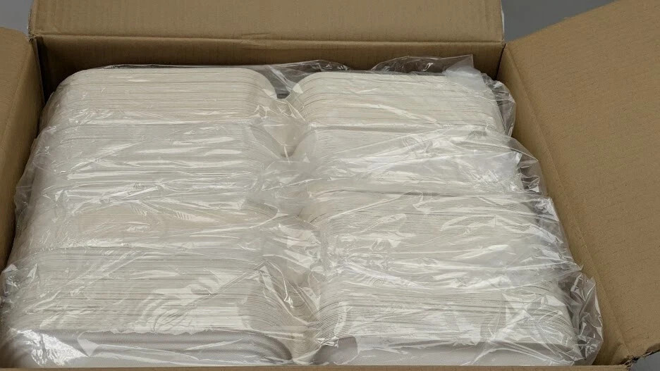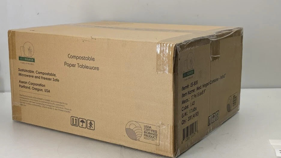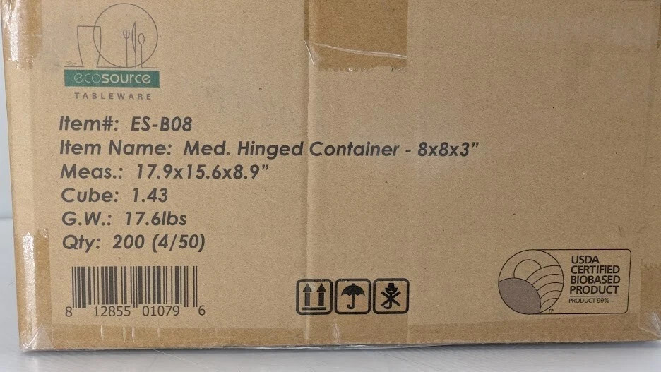 200-PACK EcoSource Compostable Medium Fiber Hinged Container 8"x8"x3" Clamshell