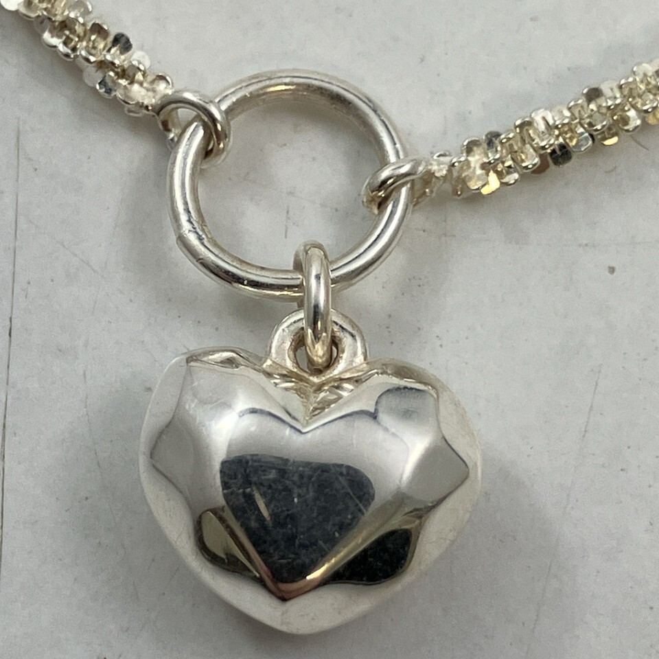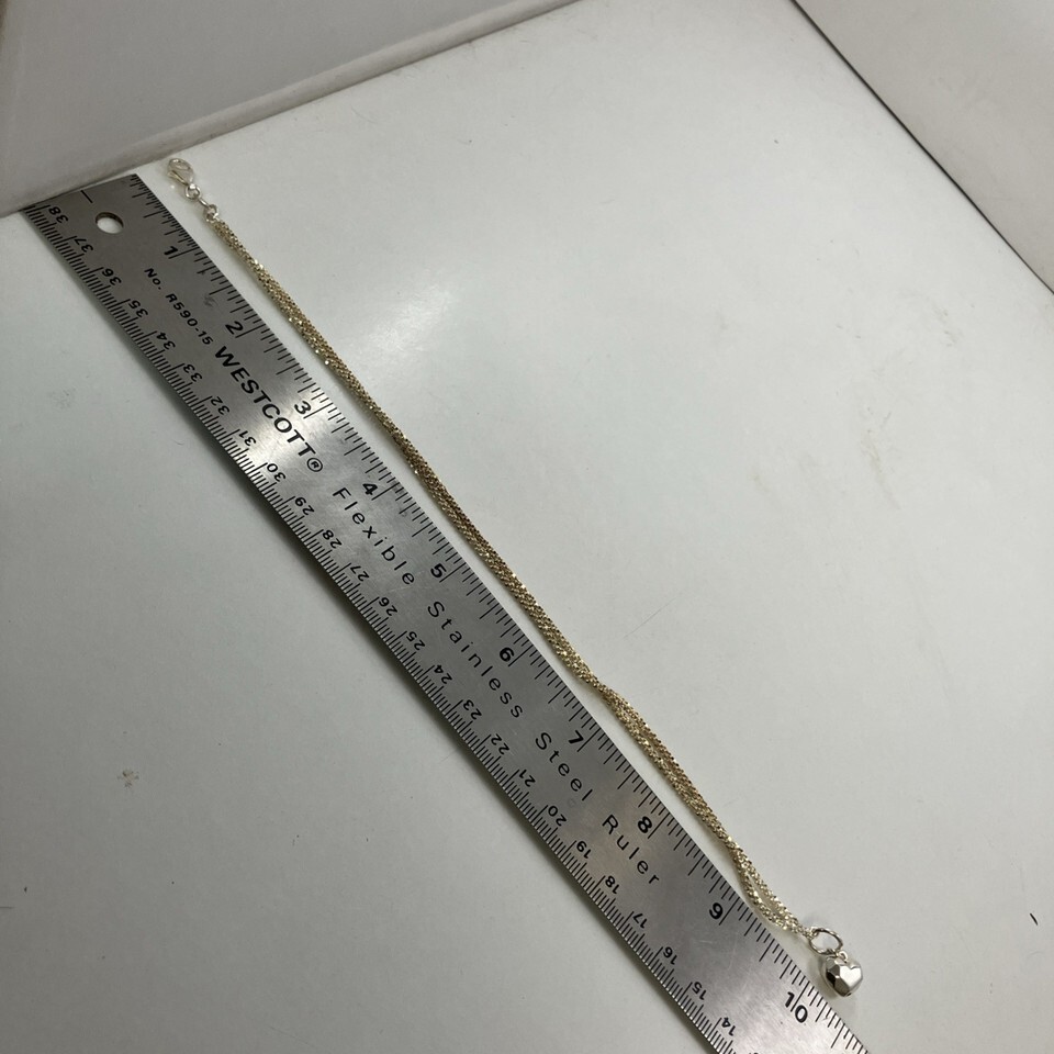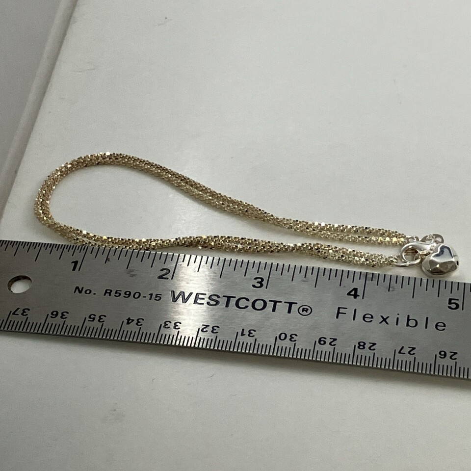 Italy Milor 925 Silver Twisted 10” Ankle Bracelet With Heart Charm SPARKLY!