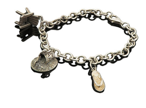 We finally decide this is an ankle bracelet. Marked Milor 925. It?s extremely sparkly and we can?t decide if it has gold overtones or not.