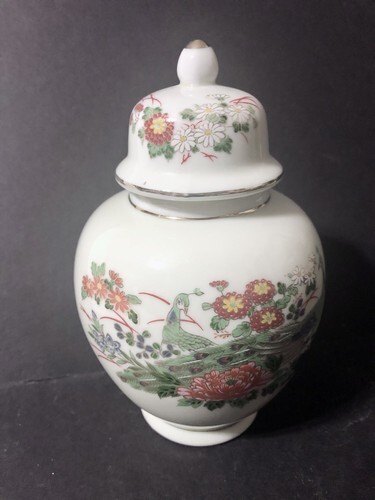 Vintage Japanese Ginger Jar Peacock Floral and similar items