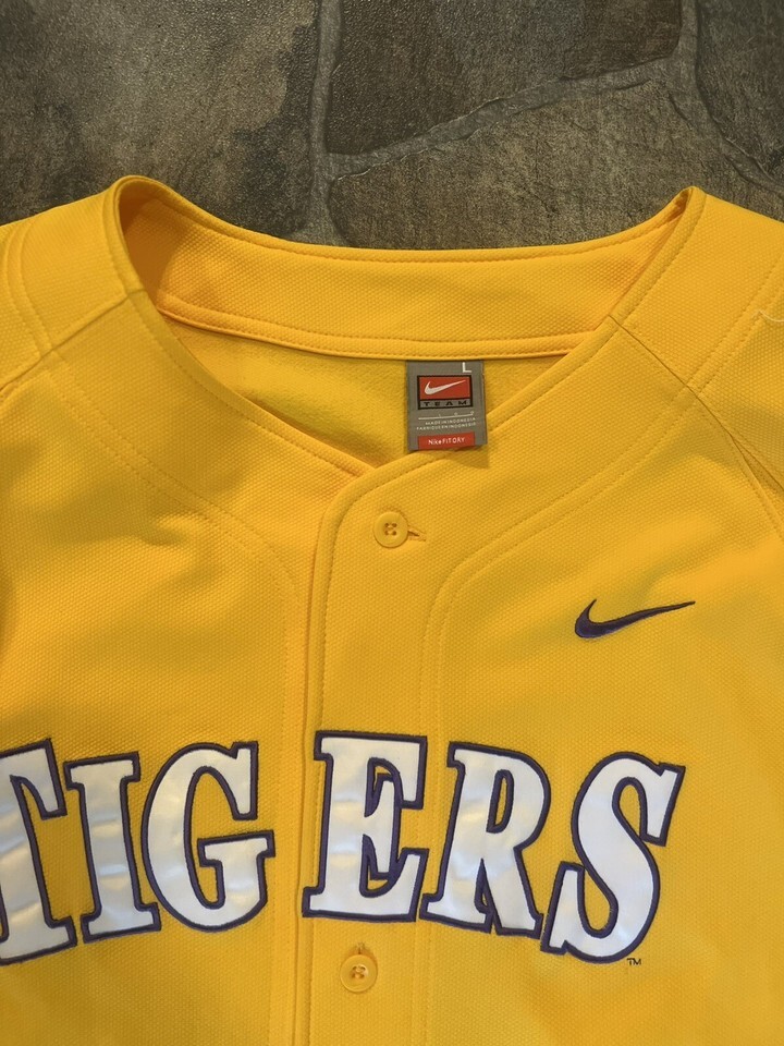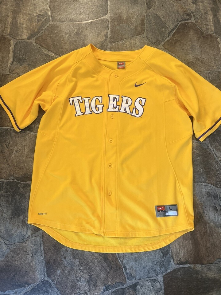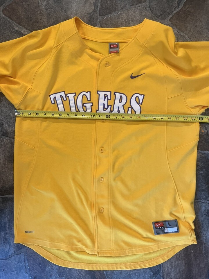 Nike Fit Dri Mens Button Gold Tigers SS Baseball Jersey!!(Lg)