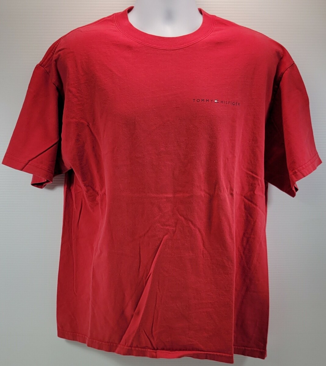 Vintage Tommy Hilfiger Men's Red Cotton Short Sleeve T-Shirt XL