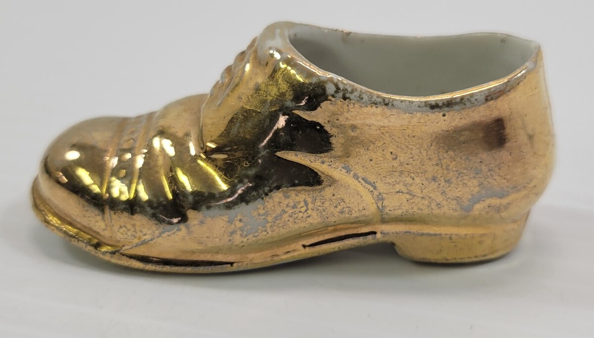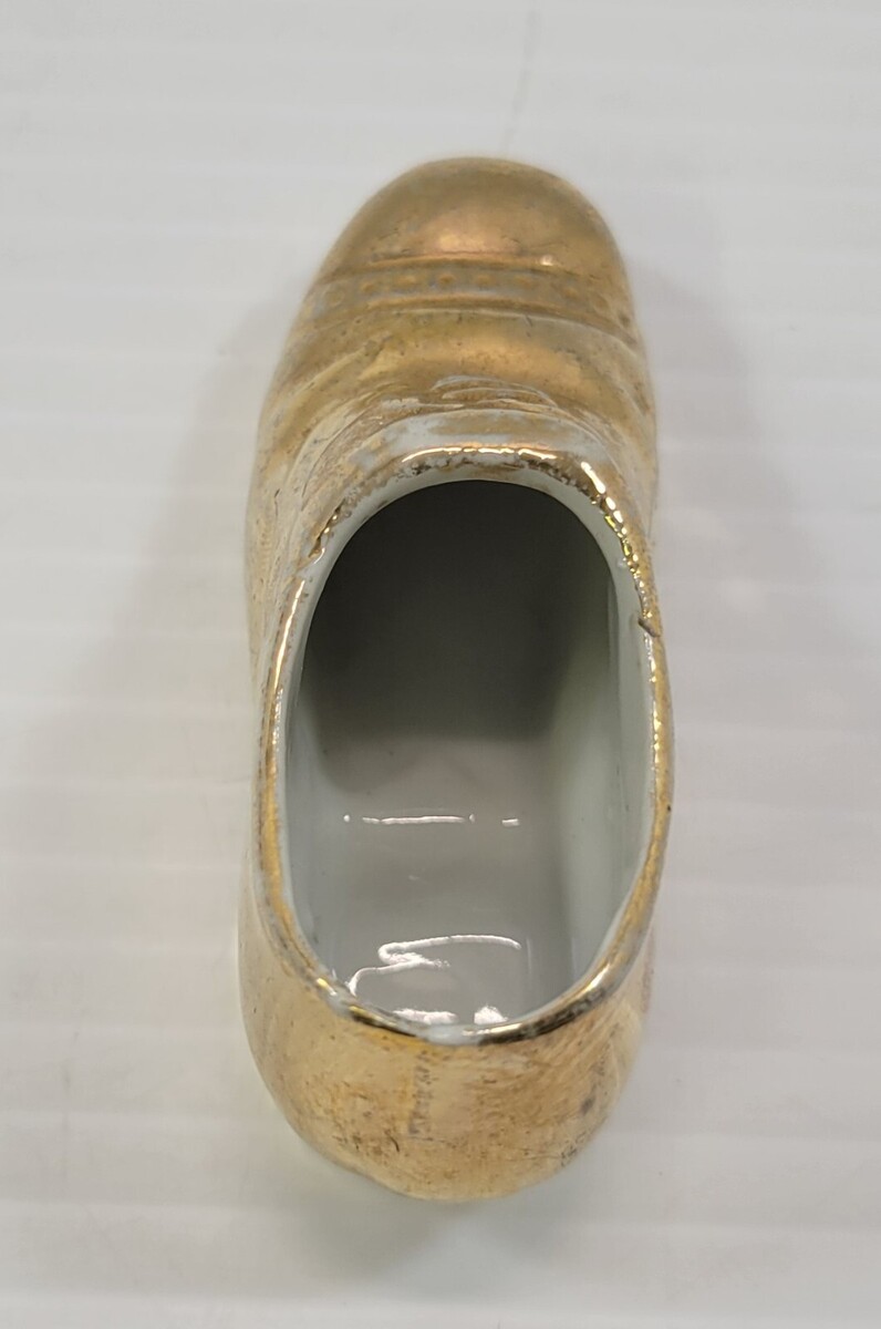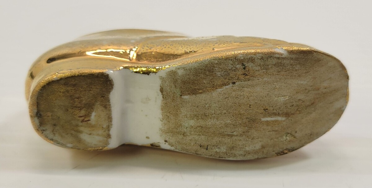 *B3) Vintage 22K Gold Gilded Miniature Porcelain Men Dress Shoe Japan