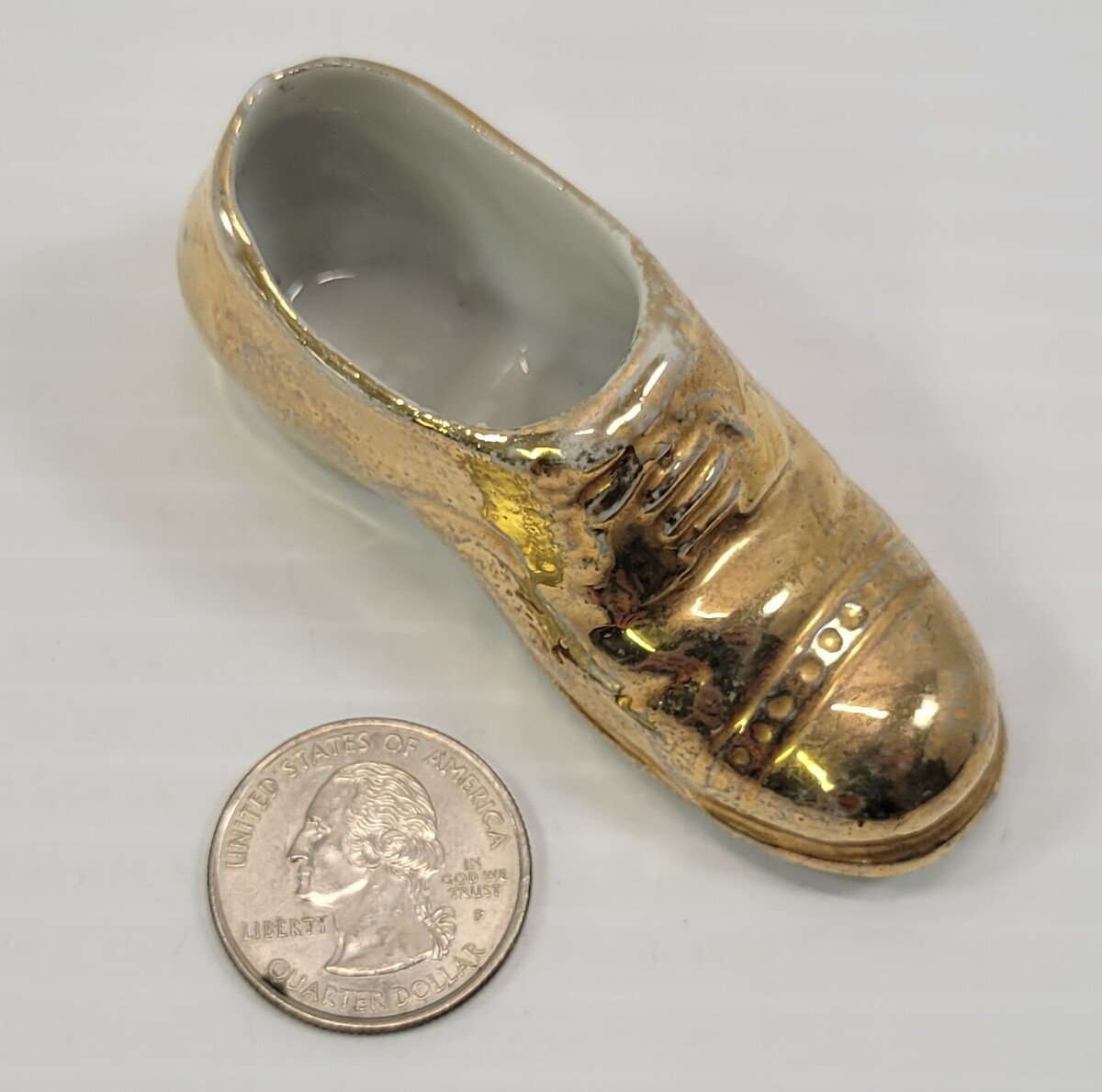 Vintage 22K Gold Gilded Miniature Porcelain Men Dress Shoe Figurine