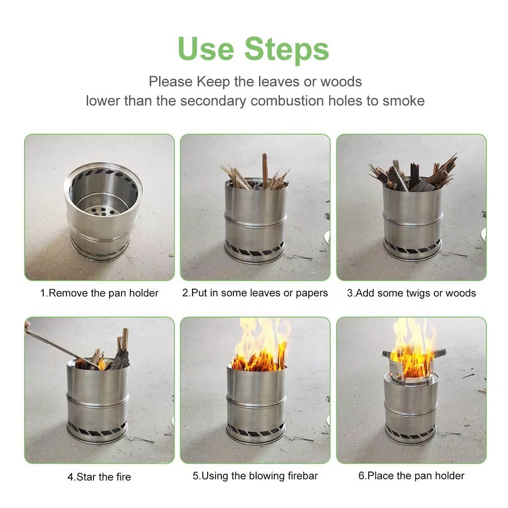 Unlimited Free Fuel: Never worry about gas canisters again. Use twigs, leaves, pinecones, or charcoal found in nature.