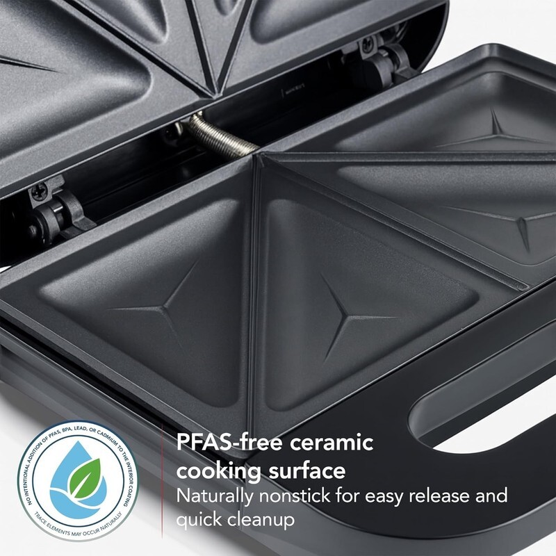 HOT SANDWICHES IN MINUTES ? Save your time in the morning and make healthy and perfectly toasted, gourmet pressed sandwiches. You can also quickly cook other meals like omelets and French toast.
