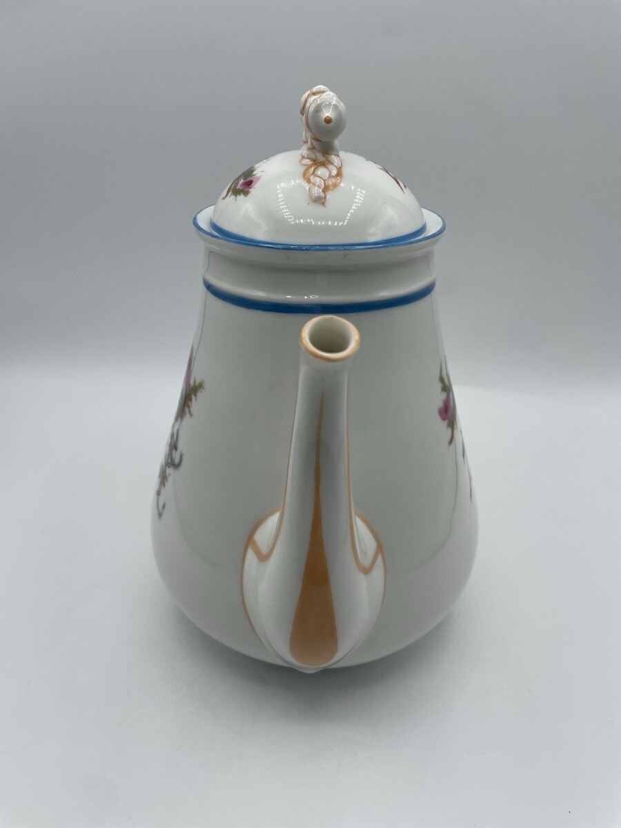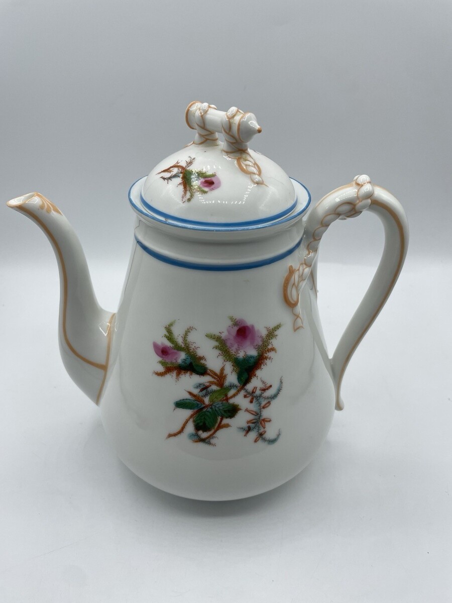 Vintage Haviland Limoges & Co. Coffee Tea Pot Floral Moss Rose Flowers READ