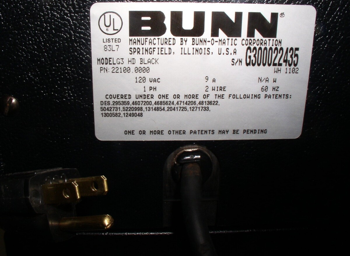 Bunn 22100.0000 Specs