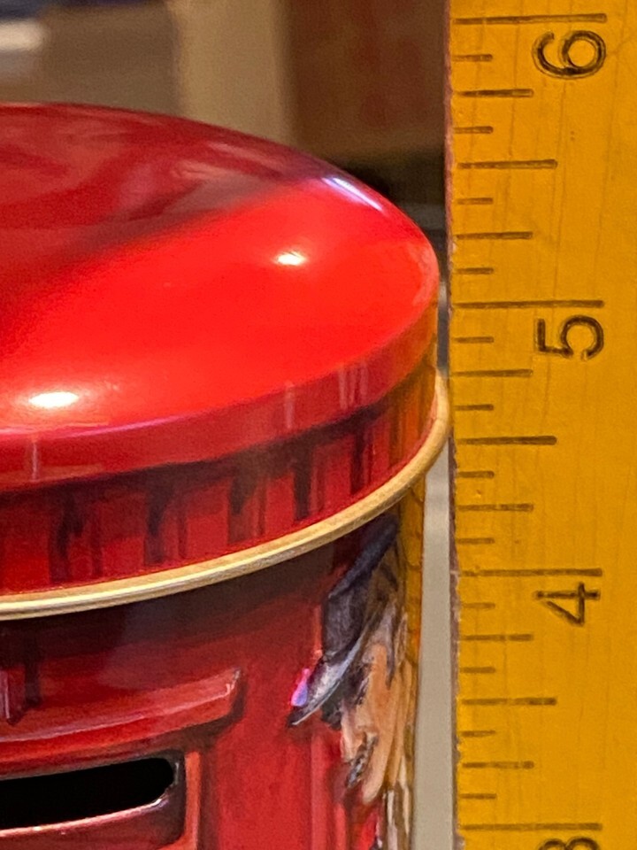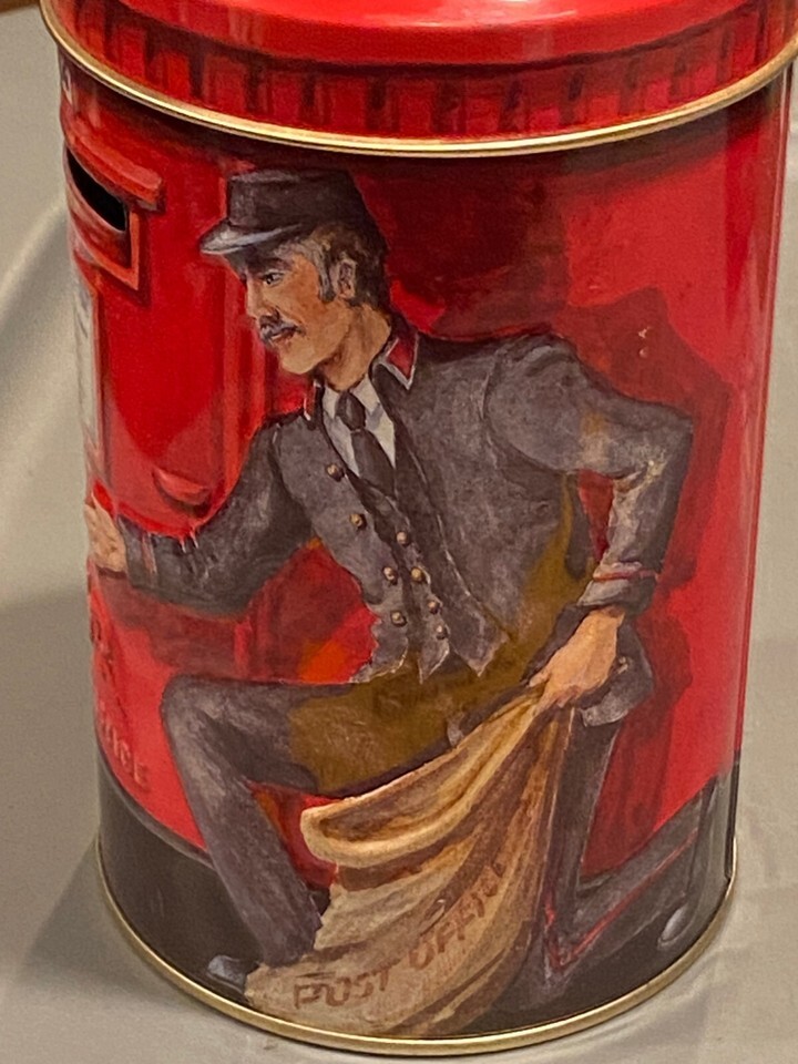 5.5" Churchill's Post Box Money Box Circular Empty Tin *Pre-Owned/Nice* c2