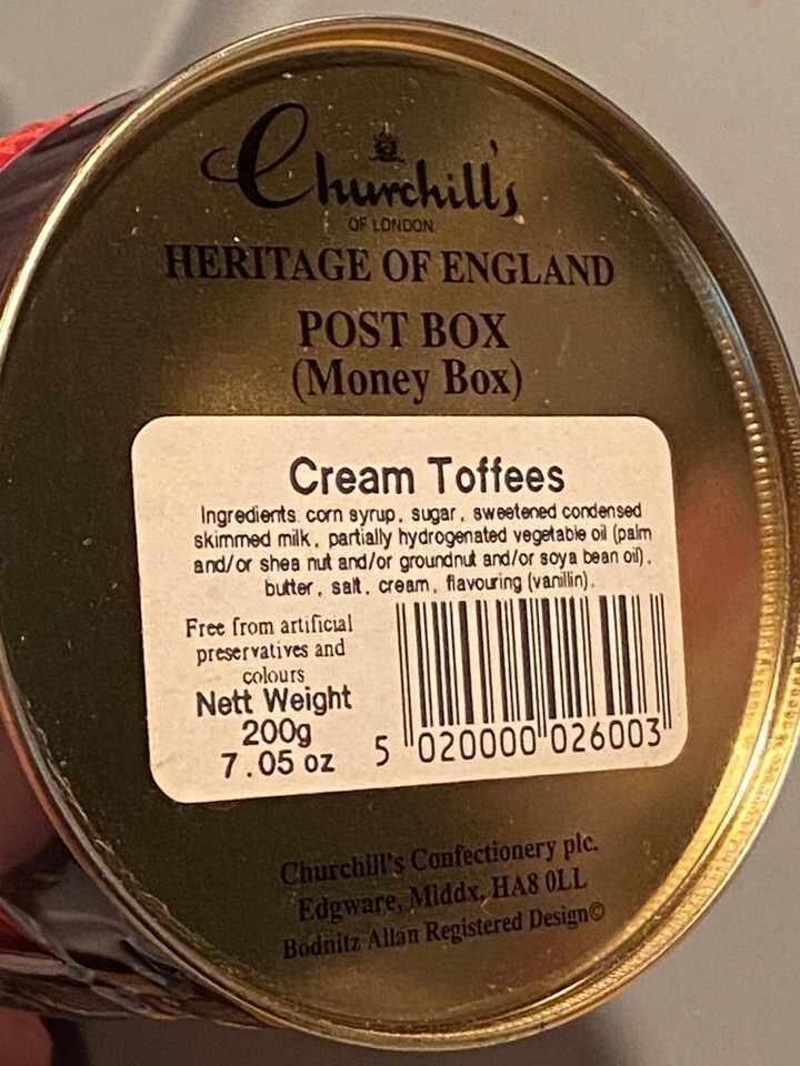 There are no cream toffees. The sale is for the 5.5" tin bank of the Post Box