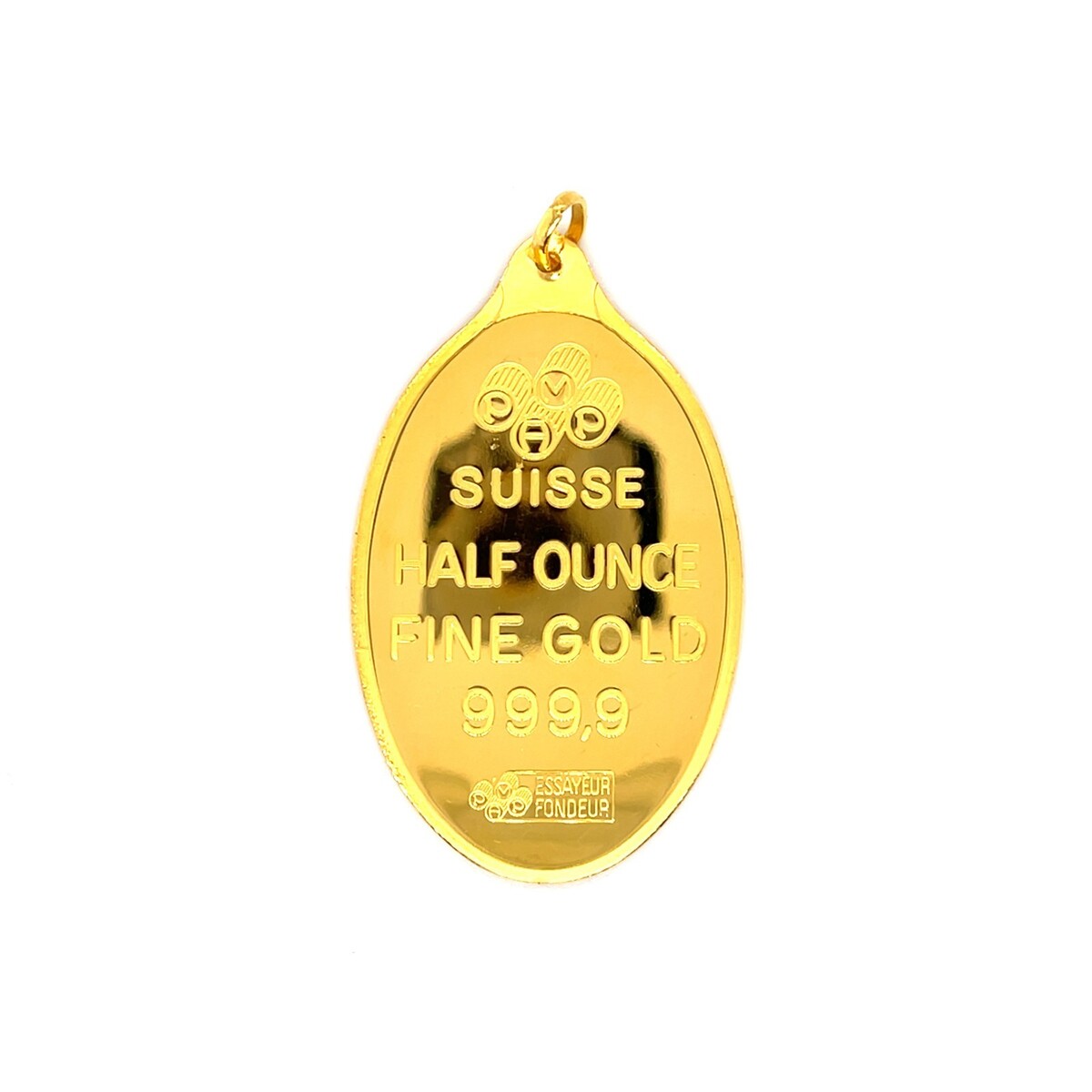 PAMP Suisse Lady Fortuna ½ OZ .9999 Fine 24KT Gold Oval Pendant Bar Bullion
