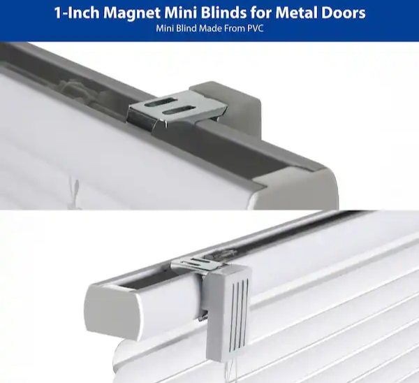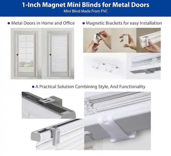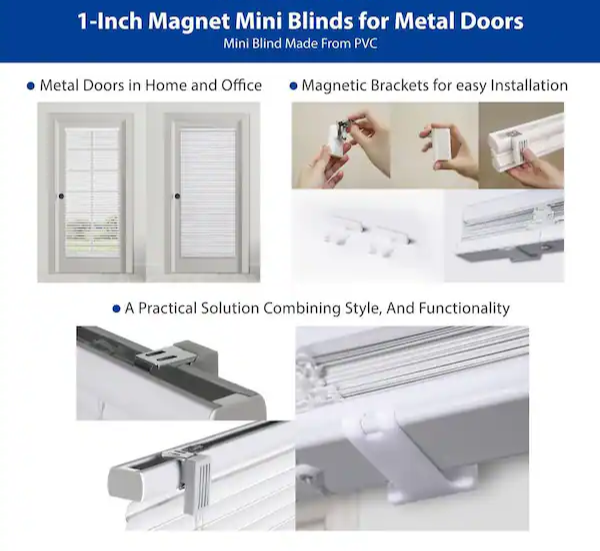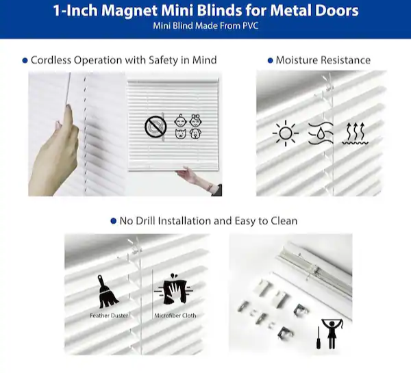 Maintain privacy on any standard steel door window with these quick-to-install mini blinds. Simply attach the pair of strong magnetic disks to the top of your steel door ? it's that easy. In addition, two magnetic hold down brackets are included to hold the bottom of the blind in place. The blinds are cordless so operation is by hand, making them child and pet safe as well as certified.